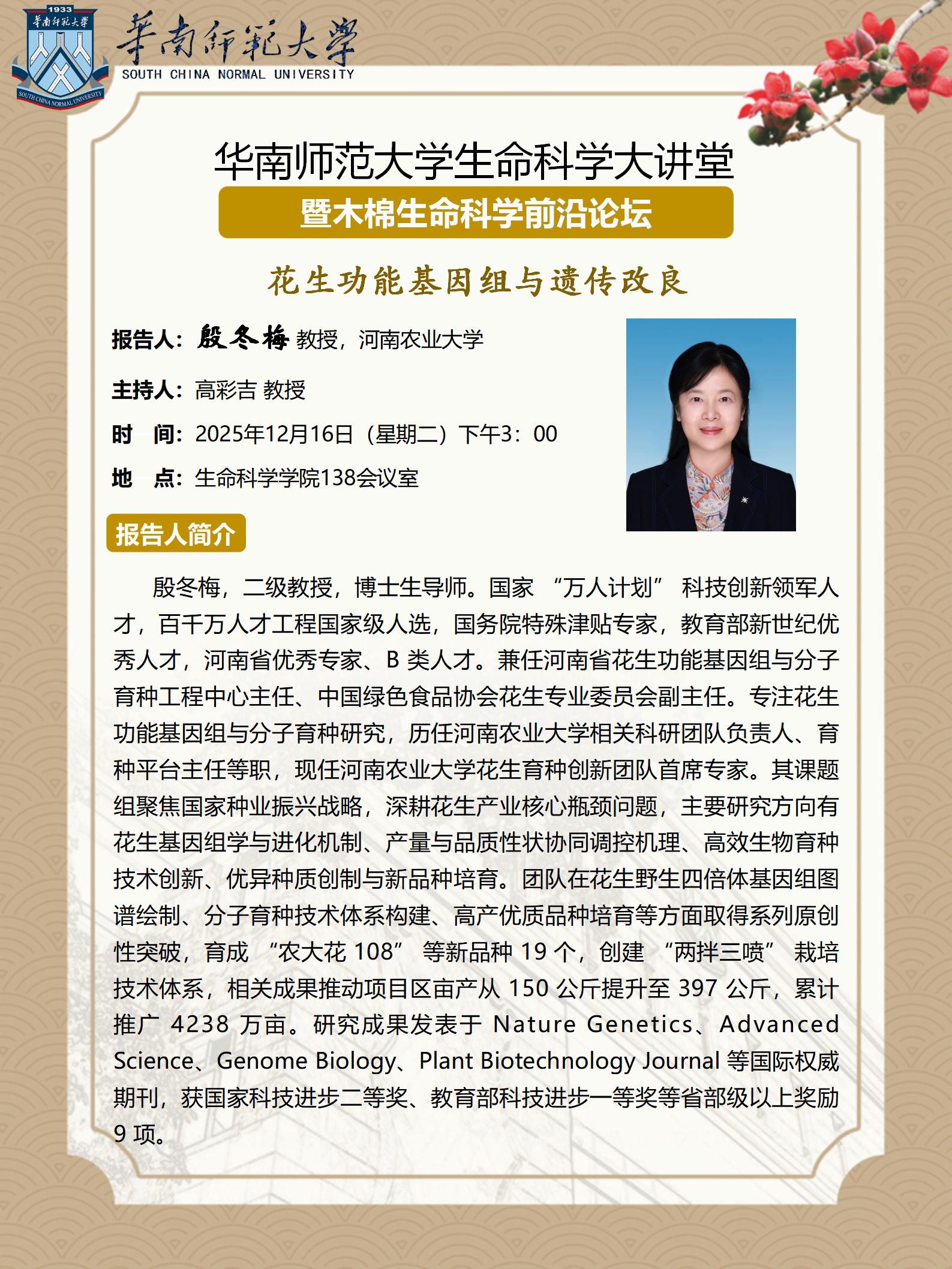 2025年12月16日学术讲座:花生功能基因组与遗传改良