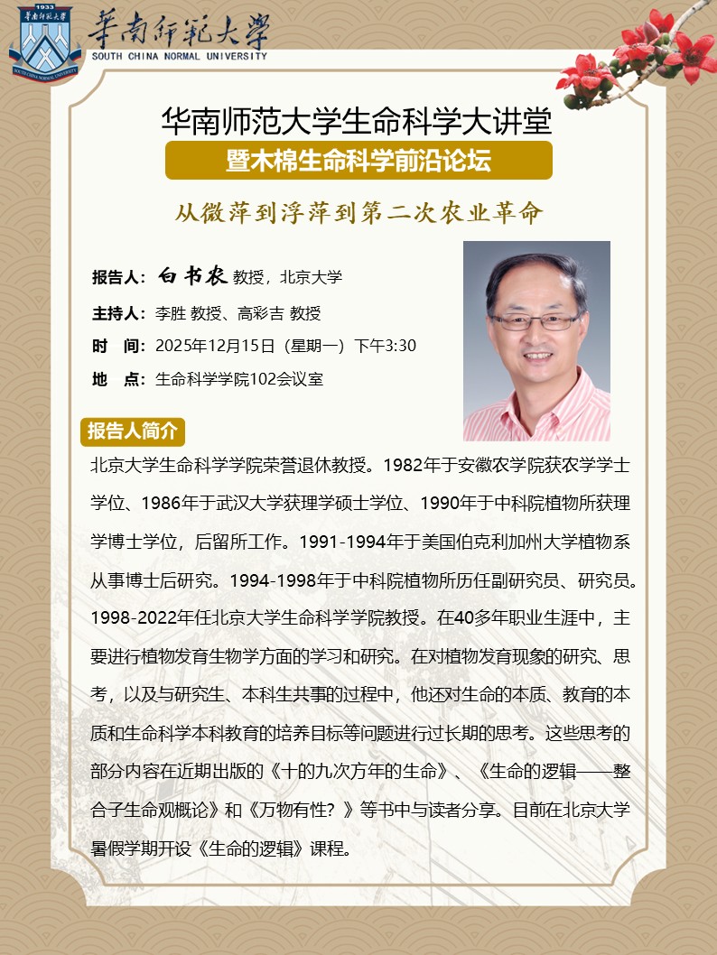 2025年12月15日学术讲座:从微萍到浮萍到第二次农业革命