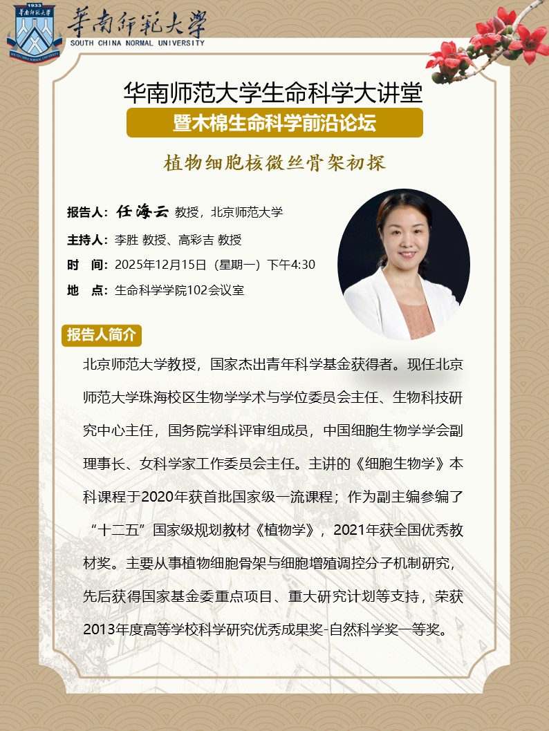 2025年12月15日学术讲座:植物细胞核微丝骨架初探