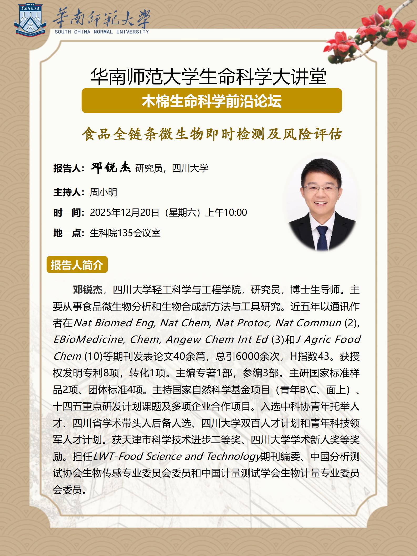 2025年12月20日学术讲座:食品全链条微生物即时检测及风险评估