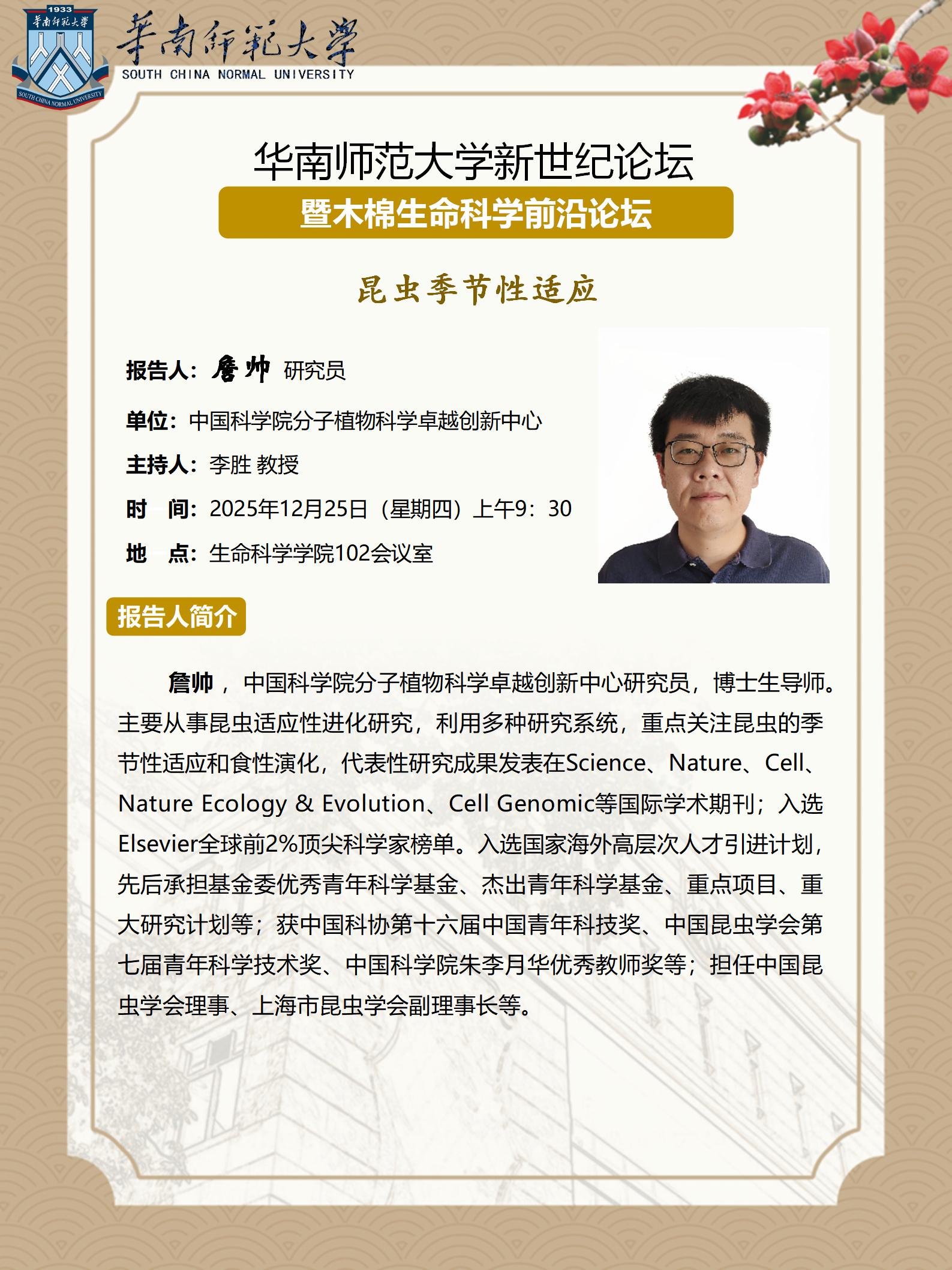 2025年12月25日学术讲座:昆虫季节性适应