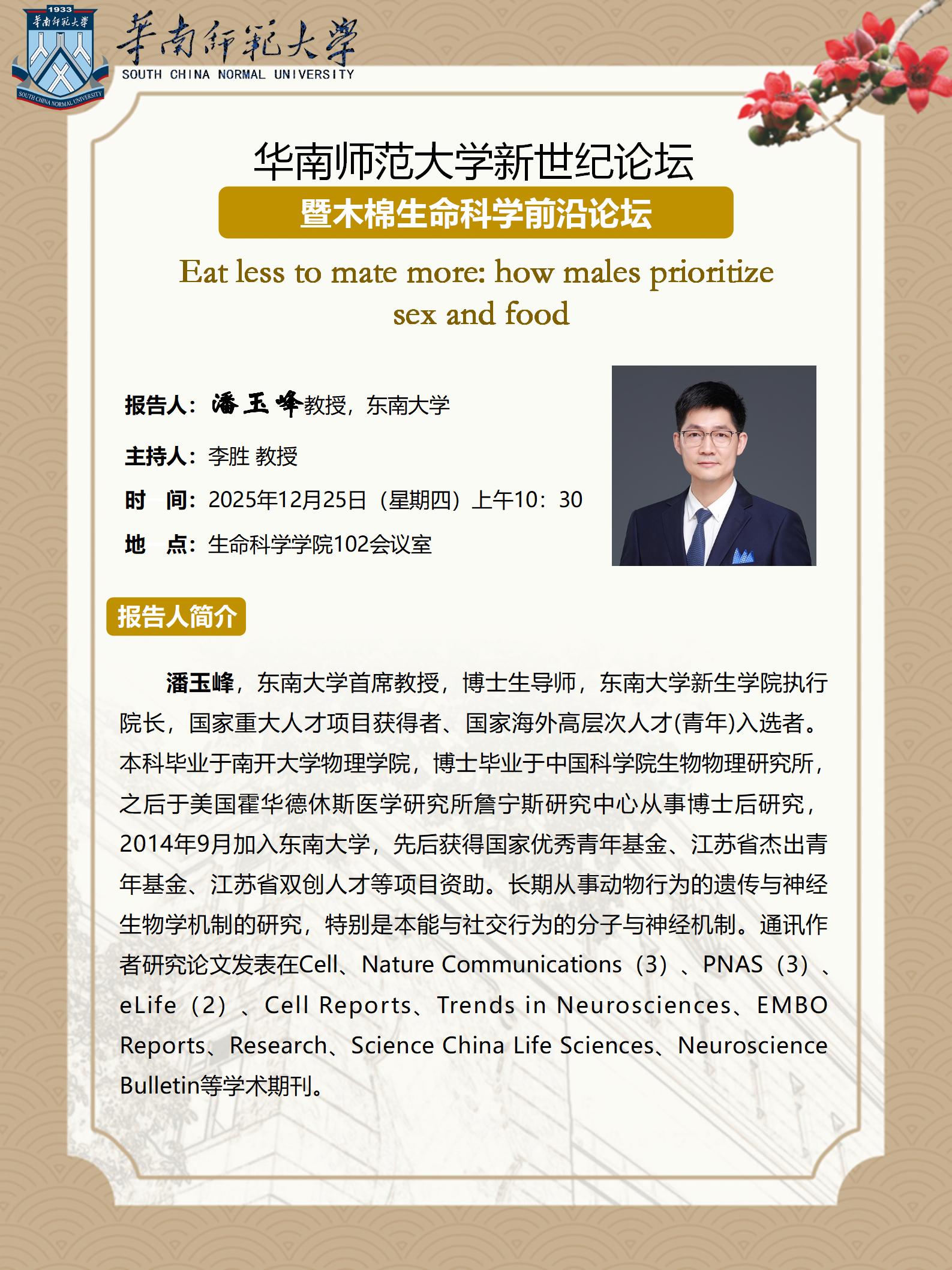 2025年11月25日学术讲座:Eat less to mate more: how males prioritize sex and food